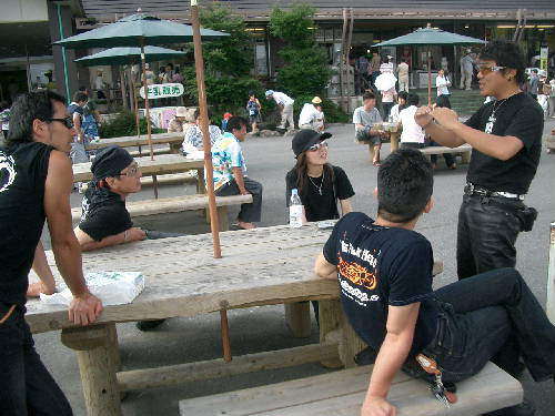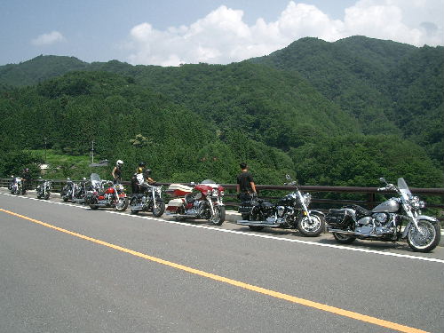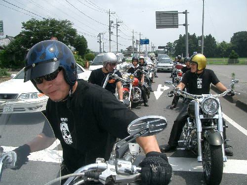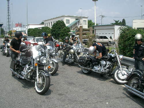 | 2005年7月17日に栃木へ日帰りツーに行って来ました。東北道岩槻ICにイッシキさん、やっちゃん、オオコシさん、スグルさん、カズさん、マルさん、稲毛さん、吉田さん、アサやんが集合しました。佐野SAに関川さん、猪俣さん、千葉のアキラさんと合流して全員揃い出発しました。矢板IC出口で撮影です! |