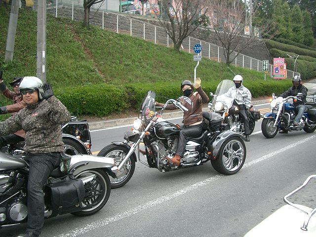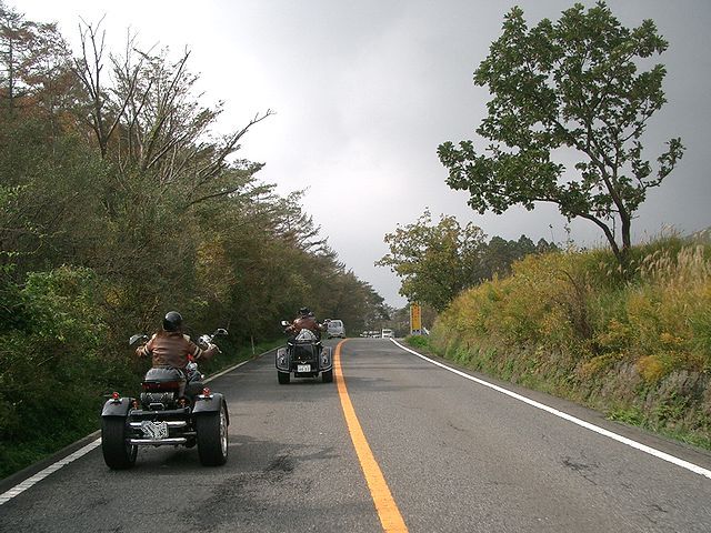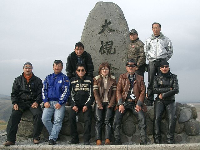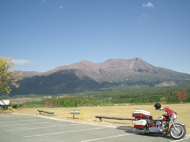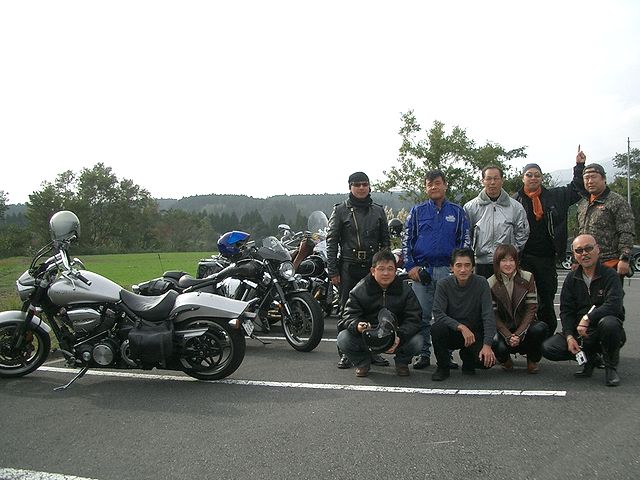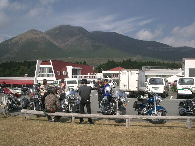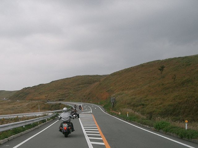 | 10時に別府港で、努さん、kibusonさん、ナスタカさん、クボさんにお会いすると、丁度神戸からのフェリーが到着、姫路のホソミさん、ユキちゃんにお会いしました。すっかり雨は上がり、いよいよ阿蘇に向けて出発です!湯布院の綺麗な町並みを抜けて、やまなみハイウェイを走ってま〜す。とても良いコースなのでバイクの方が多いですね! |