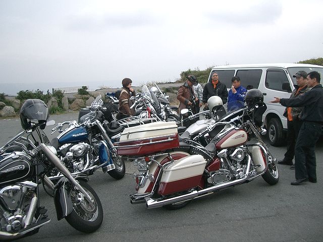 | 大観峰の駐車場で皆さん雑談中です。そろそろお別れって感じが少し寂しい時間です。 |