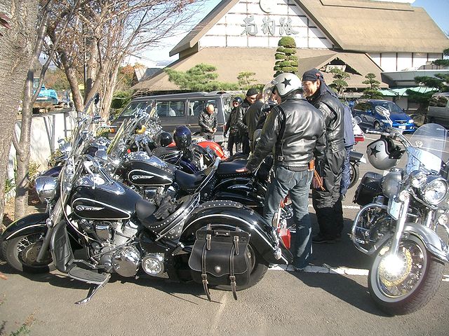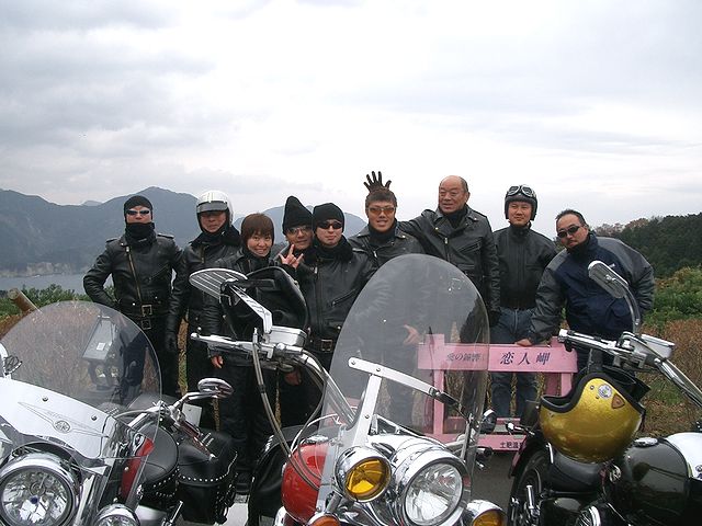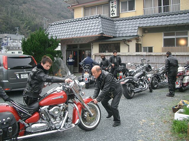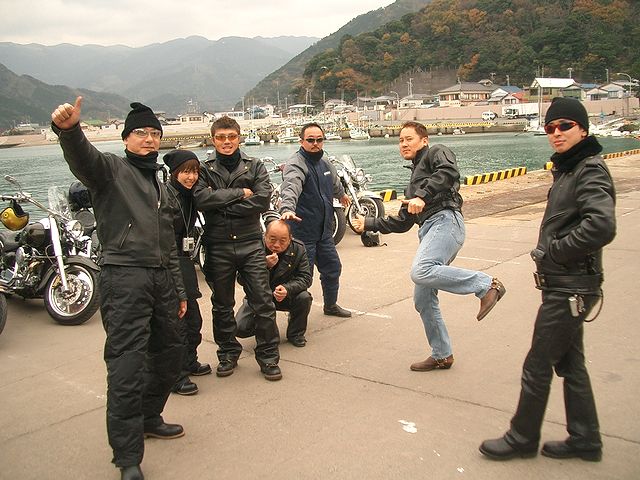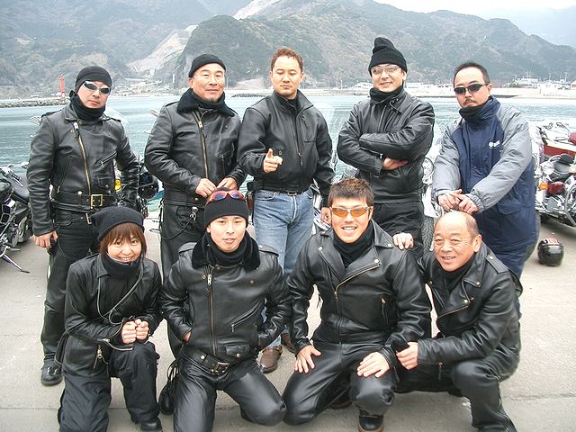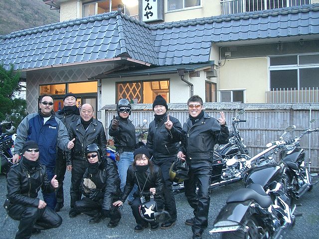 | 2005年12月10日、11日に西伊豆に忘年会一泊ツーに行って来ました。10時にマルさん、ルカさん、イッシキさん、やっちゃん、ヒロシさん、カズさん、スグルさん、オオコシさん、フクシさん、タカスギさん、吉田さん、アサやんで東名海老名SAに集合しました。沼津ICで下りてお昼です。ステーキ&うなぎ、美味しかったね〜! お店の前で記念撮影。 |