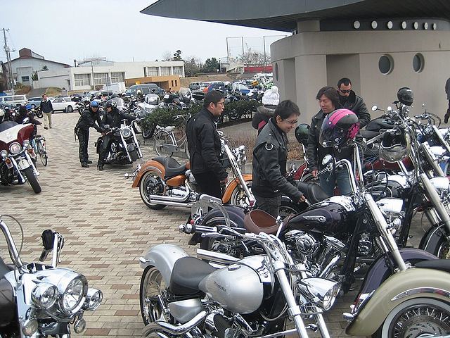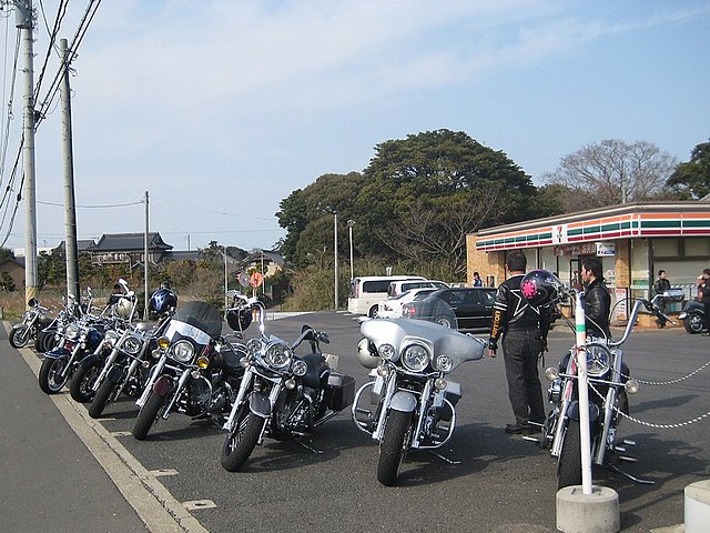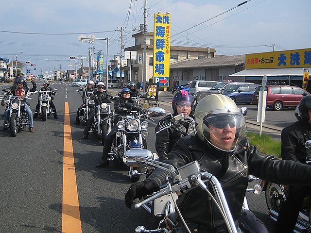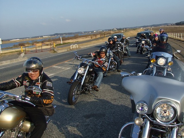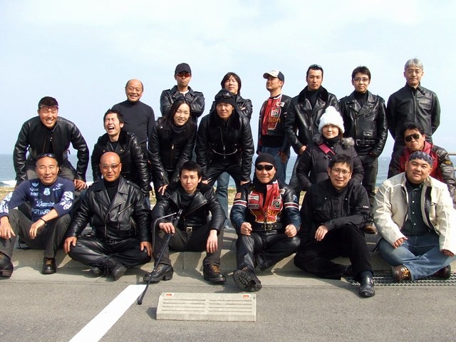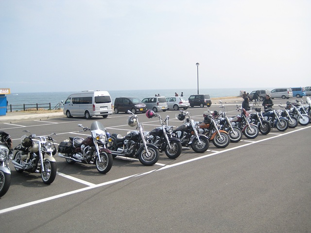 今日はアメリカンのバイカー多かったですね!気温17度、一番気持ち良く走れる時期ですね〜 皆さんと大洗海岸で記念撮影〜 |
