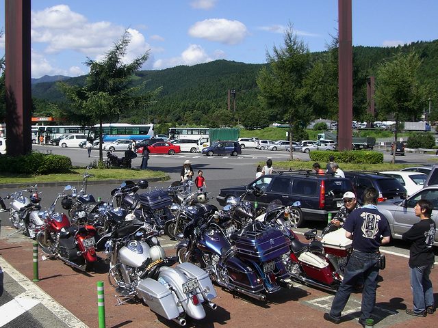 上信越道の横川SA11時30分にR-Saitoさん、ナカムラさん、渡辺さんと合流で昼食です。 連休なのでバイクも多いですね。 |